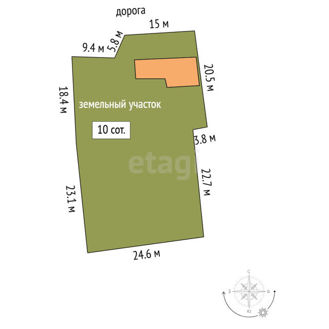 - Площадь участка10 сот.